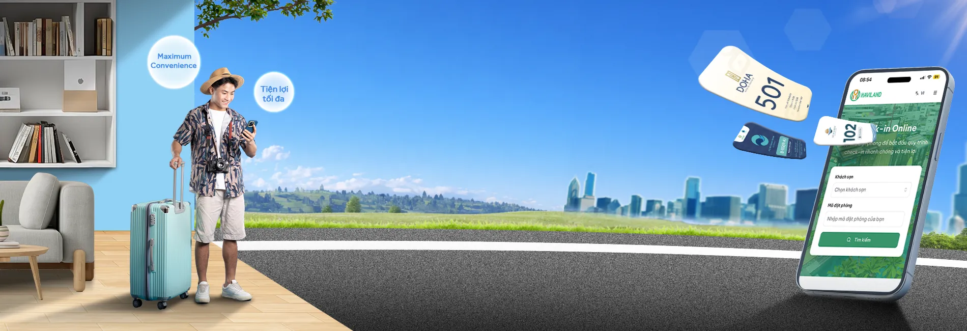 Không còn phải xếp hàng chờ đợi! Chỉ với vài thao tác đơn giản trên thiết bị của bạn, bạn đã có thể hoàn tất quy trình nhận phòng nhanh chóng, linh hoạt và an toàn trước khi đến.